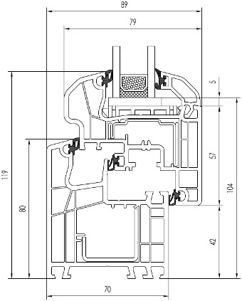 - Pięciokomorowa budowa oraz głębokość zabudowy 70 mm zapewnia optymalną ochronę termiczną i akustyczną (1,2 W/m2K).
