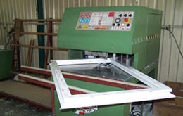 Proces zgrzewania futryny i skrzydeł PCV. |